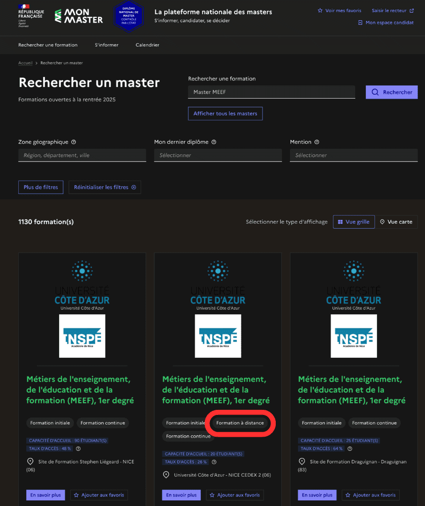 Voici une liste (non exhaustive) des universités proposant un master MEEF à distance :